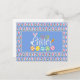 Ein glücklicher Ostertypografie-Gruß in Blau mit Ostergnomen und farbigen Eiern