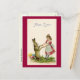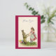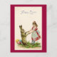 Vintage Darstellung eines jungen Mädchens, das mit einem großen, braunen Kaninchen zu tanzen scheint.