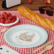 Aquarellfarbene Ostereierpapiere mit Vintagen Tellern für den Osterbrunch mit Ente-Ei-blauem Rand. Personalisieren Sie einfach den Familiennamen. - Kate Eden Art.