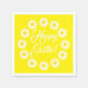 Happy Ostergelbe Dissy-Blume grenzen personalisierte benutzerdefinierte Skripttext fröhliche niedliche Party Papier Servietten. Eleganter, anpassbarer weißer Skripttext, gelber Hintergrund.