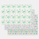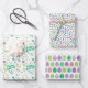 Ein koordiniertes Set von Osterverpackungsblättern inklusive einer, die "Happy Oaster", ein Blatt Polka Punkte und ein Blatt Ostereier sagt.