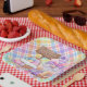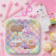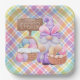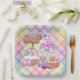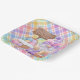 Eine bunte, festliche Platte aus viereckigen Papieren, die in fröhlichen Osterfarben und Pastellfarben gehalten ist