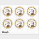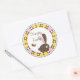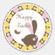 Happy Oaster - Whimsical Ostersonne über Frühlingsblumen und dekorierte Ostereier Hintergrund. Original Rundaufkleber individuell anpassbares Design. Sie können die Textfront, Größe und Farbe ändern und die Größe des Aufklebers ändern.