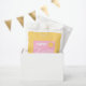 Ein niedliches, kleines, gelbes Küken auf rosa Untergrund, mit dem Gruß "Happy Oaster" und einem gelben Rahmen.