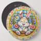 Happy Oaster mit Niedlichem Hasen, Eiern und Blume Button