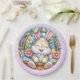 Happy Oaster mit Niedlichem Hasen, Eiern und Blume Pappteller