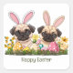 Happy Oaster Mops Hunde Bunny Ears Quadratischer Aufkleber
