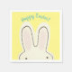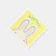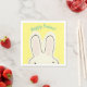 Happy Oaster lustige niedliche bunny peekaboo Cartoon Illustration mit benutzerdefinierten modernen Skript Text gelben Party Papier Servietten. Vollständig anpassbarer aquamariner, moderner Skripttext mit gelbem Hintergrund, sodass Sie ihn individuell gestalten können.
