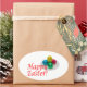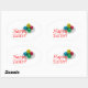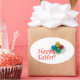 Happy Ostertext in roter Farbe und eine weiße Porzellanplatte mit vier bemalten Eiern in den Farben blau, grün, rot und gelb. Drucke und Geschenke für alle