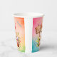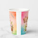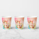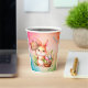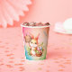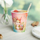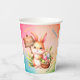 Happy Oaster Papier Becher mit einem Hasen, der einen Korb mit Blume und farbigen Eiern hält