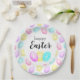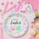 Dieses Set von Tellern aus Papier enthält die Worte "Happy Oaster" mit einem Set dekorierter Eier und einem niedlichen Pastelleier-Ostermuster. Ideal für Ihre Osterfeiern!