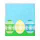 Schönes und niedliches Ostermotiv mit farbenfrohen, dekorierten Ostereiern-Motiven in Grün, Blau und Gelb, Pullblau, erinnert an einen klaren, blauen Frühlingshimmel.