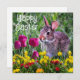 Diese Karte zeichnet sich durch ein Federwild-Design aus, mit einem wilden Kaninchen und Tulpen-Blume. Auf der Vorderseite und auf der Rückseite gibt es einen Feiertagsgruß "Happy Oaster". Sie können wie gezeigt kaufen, um Ihren eigenen Text hinzuzufügen.