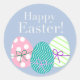 Schönes Osterdesign in einem blauen Kreis, mit bemalten Eiern.