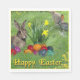 Frühlingsszene mit #EasterBunnies und #EasterEggs auf einer grünen Wiese mit Blume, Text #HappyOaster 👉 Matching Paper Teller, Tassen und mehr Artikel mit diesem Design verfügbar.