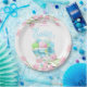 Schöne Aquarelleier Ostereierkorb mit einem Schleifenbogen und einem schönen Rahmen aus Federblüten. Frohe Ostern!