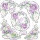 Frühlingsblumen in Violett- und Lilatönen mit Grünpflanzen für Frühling und Osterdekoration - Happy Oaster Text