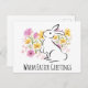 Happy Oaster White Rabbit Blume Postcard Postkarte