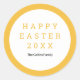 Happy Oaster Yellow Elegant Individuelle Name Moderner Klassischer Rundaufkleber mit solidem Gelb an den Kanten. Das Zentrum präsentiert "HAPPY EASTER 20XX" und den Familiennamen in fett gelb und schwarz, begleitet von Veranstaltungsdetails in einem modernen und eleganten Schriftart. Dieser Aufkleber ist perfekt für eine Ostersonntagsbrunch-Ansammlung für Erwachsene geeignet und passt sich perfekt an Ihre Veranstaltung an. Brauchen Sie mehr Hilfe? Klicken Sie auf die Schaltfläche "Nachricht" unten. Gerne helfen wir Ihnen bei der Abwicklung von Kundenaufträgen.