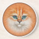 Das Gesicht eines flauschigen orangefarbenen Tabby Cat Kätzchens mit durchdringenden blau-grünen Augen. Realistisches Kunstwerk aus einer originalen Ölgemälde des Tierkünstlers Crista S. Forest.