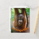 Ein junger männlicher Orang-Utan teilt ein glückliches Lächeln während der Dschungelschule im Regenwald Indonesiens.