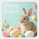 Happy Osteraufkleber mit Hasen und Blume Quadratischer Aufkleber