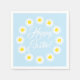 Happy Oaster hellblau gelb und weiß dunkelblauen Blume grenzen personalisierte benutzerdefinierte Skripttext fröhlich niedliche Party Papier Servietten. Eleganter, anpassbarer weißer Skripttext, hellblauer Hintergrund.