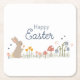 Happy Oaster Bunny Wildblumen Niedlich Kids Holiday Square Paper Untersetzer illustriert von der internationalen Designerin Kathrin Legg