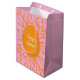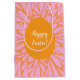 Happy Ostergebirge Ei. Niedliches orangefarbenes Ei mit abstraktem Blumenbrand. Retro Oaster Papier Geschenktasche