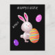 Happy Osterkaninchen & gestreifte Eierpostkarte. Postkarte