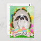 Happy Osterfest niedliche farbenfrohe Gestaltung mit Hasen, Ei, Blume