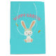 Happy Osterweißer Hase auf blau Mittlere Geschenktüte