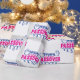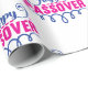 Ein glückliches Pessach-Umschlagpapier in rosa und blauer Schrift