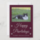 Gute Feiertage! Foto mit lila Hintergrund und grauem Skript. Bildvorlage über Pixabay, lizenziert unter CC0 und muss durch Ihr eigenes Foto ersetzt werden