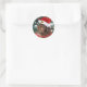 Dieser niedliche Aufkleber zeigt einen hübschen Schokoladenhund mit dem Hut des Weihnachtsmanns, der in der Nähe eines verzierten Weihnachtsbaumes sitzt, und die Worte "Happy Pawlidays".