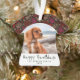 Happy Pawlidays Hund Foto 1 Line Weihnachtsschmuck. Rot, Rosa und Beige sind eine Linienform. Der Text lautet Happy Pawlidays. Ändern Sie das Foto mit dem Foto Ihres Tieres. Schöne Feiertage mit Sake-Ornament oder einzigartiges Geschenk.