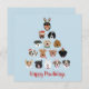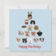 Illustration von vielen verschiedenen Hunderassen. Sie sind in Holiday-Kleidung gekleidet. Diese Hundeköpfe werden dazu benutzt, die Form eines Weihnachtsbaumes für die Weihnachtszeit zu schaffen.