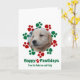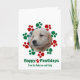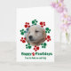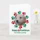 Glücklicher Pawlidays Text mit einem Foto Ihres Haustiers in einem Kranz aus roten und grünen Pfoten.