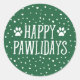 Feiern Sie Ihren Urlaub mit einem Happy Pawlidays Aufkleber für Ihre Urlaubskartenumschläge. Die niedlichen Ferienaufkleber sind mit einem grünen Hintergrund, weißen Punkten, Pfotendrucken und den Worten "Happy Pawlidays" in einem stilvollen Schriftart versehen.