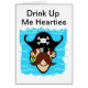 Here're our "Happy Pirate with water design" Wir haben eine Card. You can customize the inside to say whatever you wish. Just type in what you want. To adjust the color (you don't want to leave it gray!) click the black box. A pop-up menu will appear with all kinds of colors to choose from. To change the font, click the F and another pop-up menu will appear with all sorts of styles. To size, click the + and - buttons. To move fonts around either click the arrows or on the top left click "Design and your mouse can move things around. Use this for "Talk Like A Pirate Day" oder customize it as an Einladung zur Pirate Party.