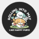 Happy Puppies Rolling in May - Kawaii Hund Kunst Runder Aufkleber