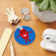 Ein Cartoon einer lächelnden roten Traube mit glänzenden schwarzen Augen und einem rosa Mund stehend vor einem blauen Hintergrund mit offenen Armen. Ein lustiges Design für Kinder oder ein sonderbares Geschenk für Erwachsene.
