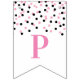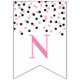 Happy Retirement Banner mit rosa und schwarzen Konfetti Muster.