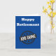 Say Happy Retirement mit dieser lustigen Karte. Diese Karte enthält eine Job-Done-Briefmarke auf einem marinen Hintergrund