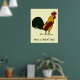 Dieser glückliche Cartoon Bantam Hahn hat einen guten Tag und er will, alle von Ihnen wissen es lassen!