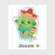 Ein Vinyl-Aufkleber mit einer niedlichen Abbildung eines plumpen und runden grünen Kakteen, mit großen kawaii Augen, lächeln und tragen einen roten Sombrero. Stehend in einem Blume Topf. Ein paar bunte Maracas an seiner Seite.