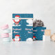 Happy Santa Claus cartoon with sheep Christmas Wrapping Paper. Cute Holiday design for friends and family. Personalized gift wrap for parents, children and babies. Funny joyful illustration with for the winter season. Add your own name and custom seasons greetings like Merry Christmas or Happy Holidays. Customizable background color.