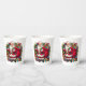 Jolly Santa holding a large sack of gifts surrounded by holiday decorations.