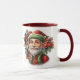 Das kartoonische Bild zeigt die Elfe des Weihnachtsmannes, die der Inbegriff des Feiertagssjubiläums ist. Der Elf ist in traditioneller Kleidung mit einer leuchtend grünen Tunika gekleidet. Sein Hut ist ein lebhafter roter, der auf einer Seite mit einem flauschigen weißen Pompom am Ende flattert. Seine Ohren sind spitz, guckend unter seinem Hut, und seine rosa Wangen und das breite Grinsen tragen zu seinem fröhlichen Benehmen bei. Seine Augen funkeln mit dem Spiegel und reflektieren die Freude der Ferienzeit. Hinter ihm ist das weihnachtliche Grün schön dargestellt. Das Bild verkörpert den Geist der Weihnachtszeit perfekt, indem es die Freude und den Beifall der Elfen des Weihnachtsmannes mit der ruhigen Schönheit eines Winterwunderlandes verbindet.