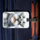 Happy Schnauzer in einem Scara Winter Art Gepäckanhänger